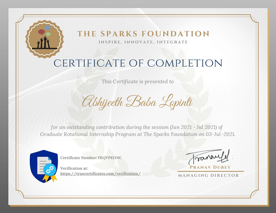 Machine Learning & Data Analyst @ Sparks Foundation.